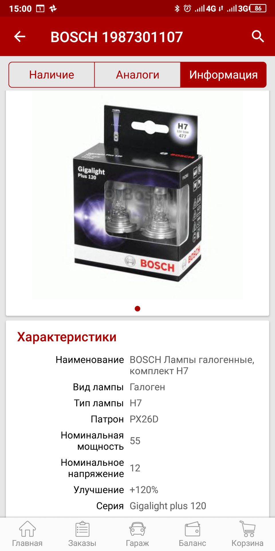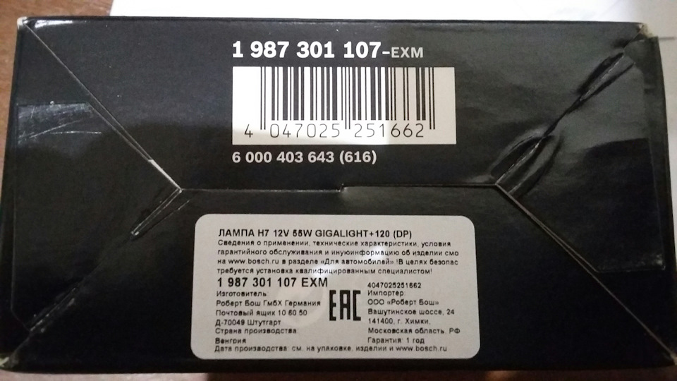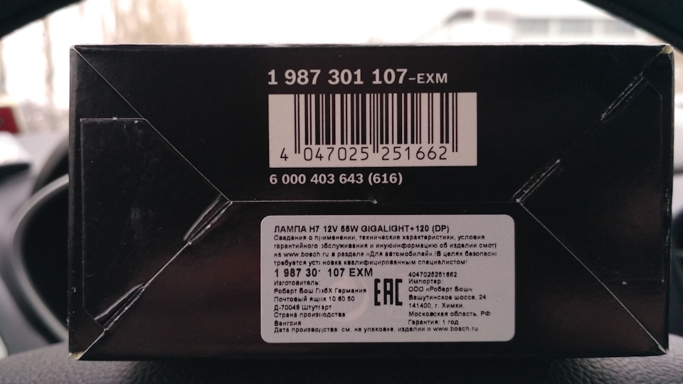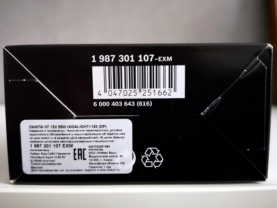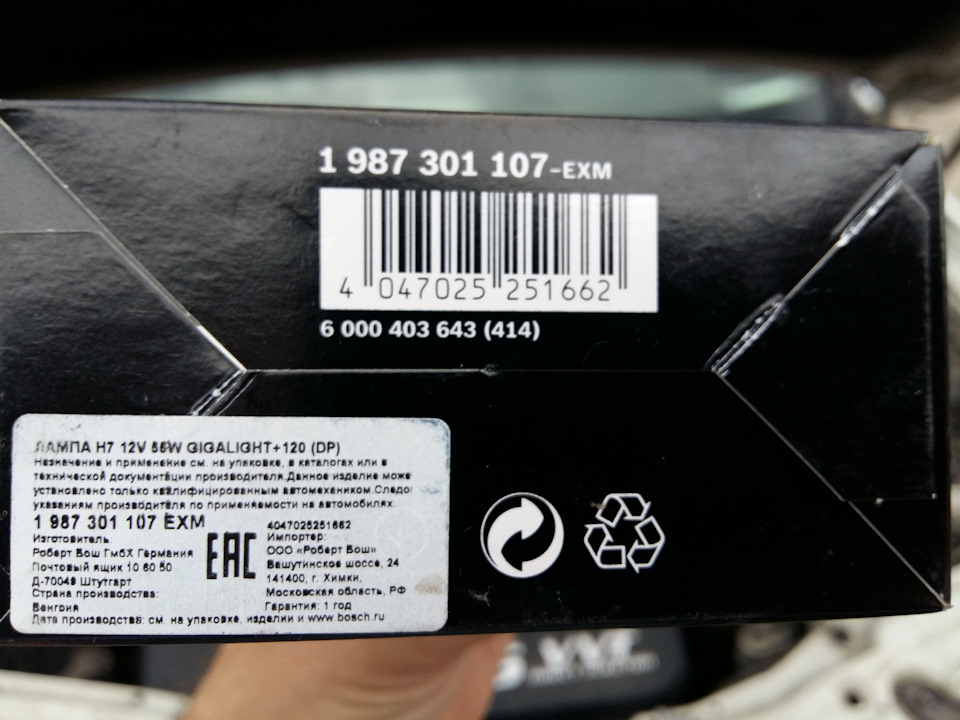- ЛАМПА 12V 55W H7 GIGALIGHT PLUS 120 (КАРТОН 2 ШТ)