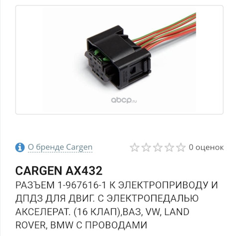 - Колодка с проводами Cargen ВАЗ 2110-15 16кл. к эл. приводу и ДПДЗ с электронной педалью