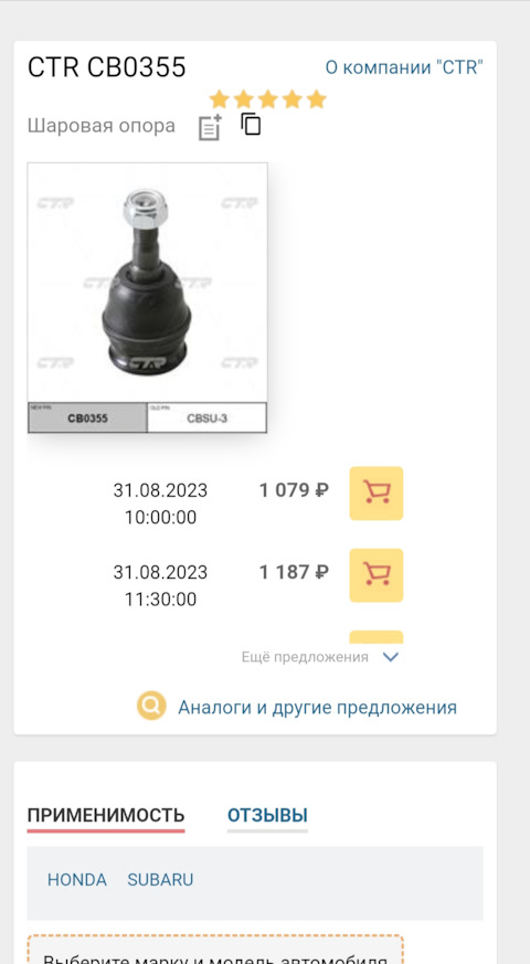 - Опора шаровая SUBARU Forester 1997 ~ 2010 / Impreza 1993 ~ 2012 / Legacy 1989 ~ 2016 / Outback 1996 ~ 2009 / XV 2012 ~
