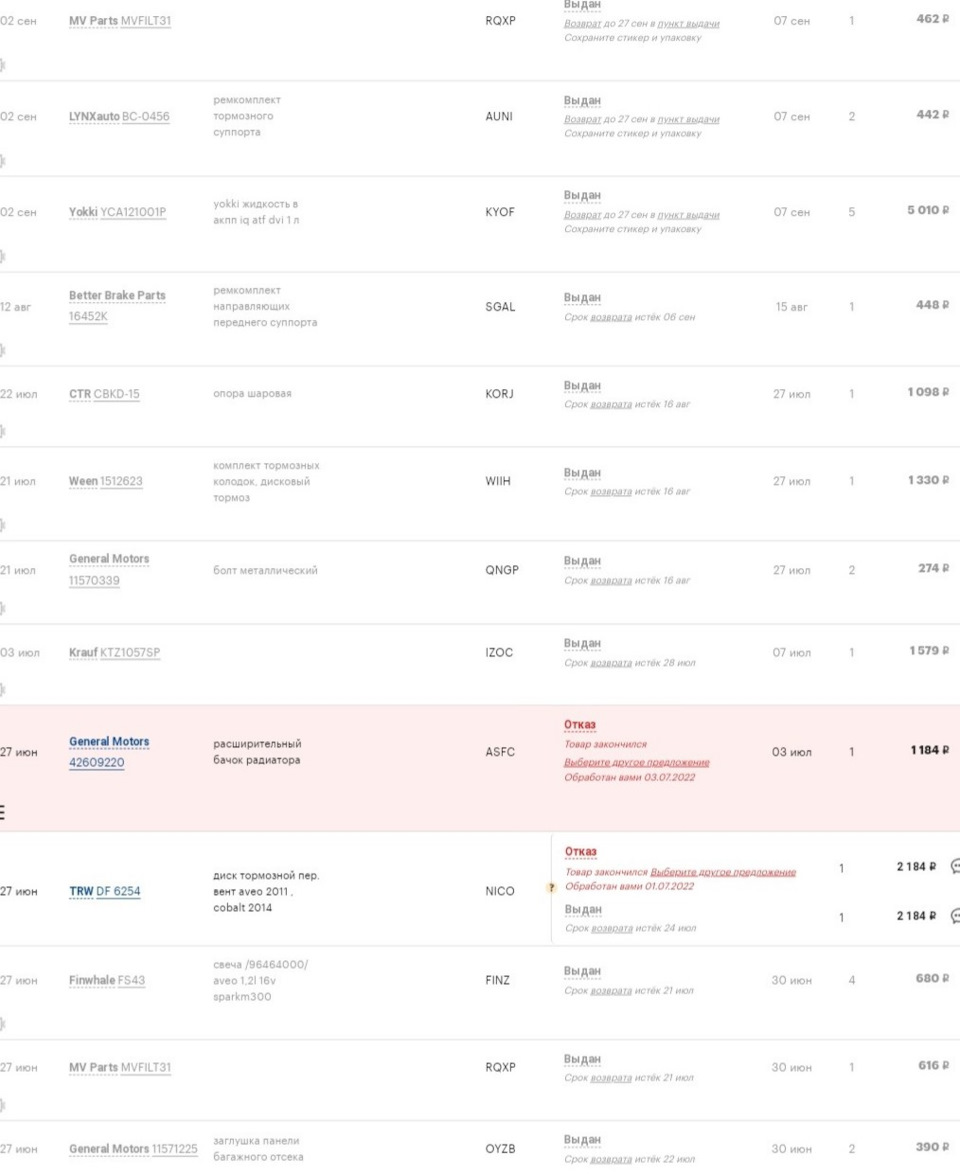 Заметка. Номера запасных частей и расходников. Постоянно пополняю.