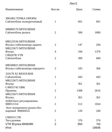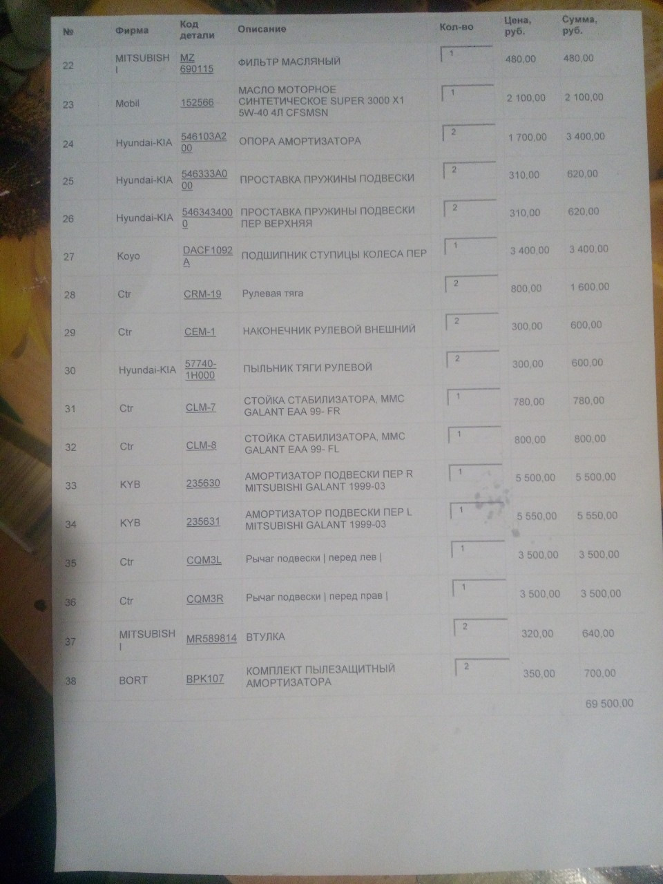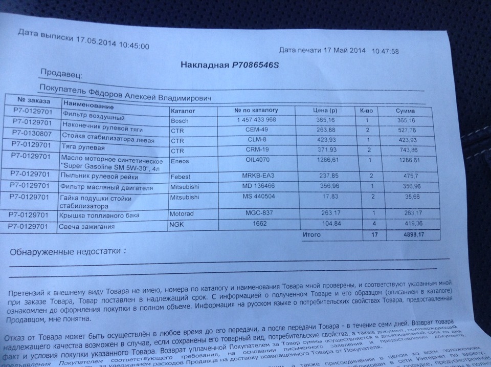 Заказ запчастей часть 1