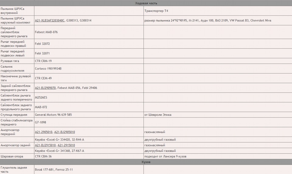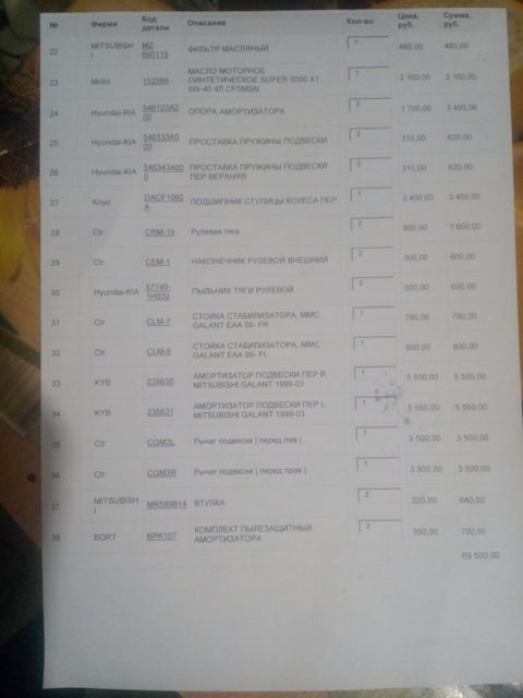 Коды запчастей на Galant 8g by Usa