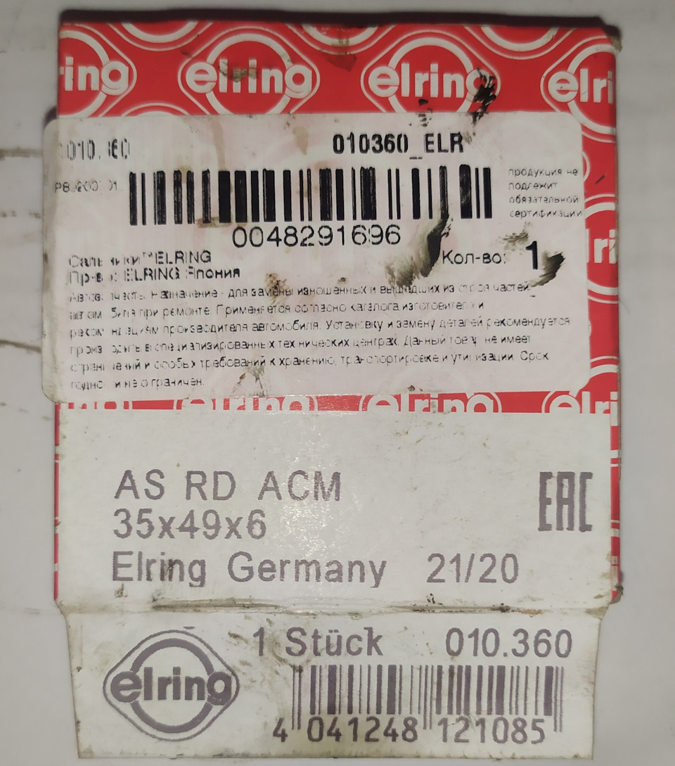 Уплотняющее кольцо, коленчатый вал