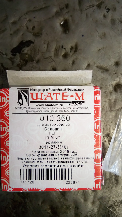 - Уплотняющее кольцо, коленчатый вал
