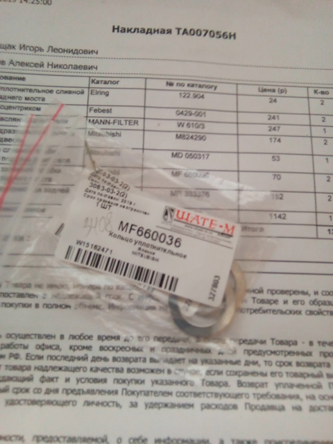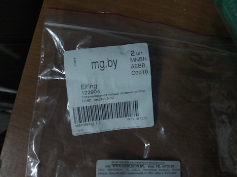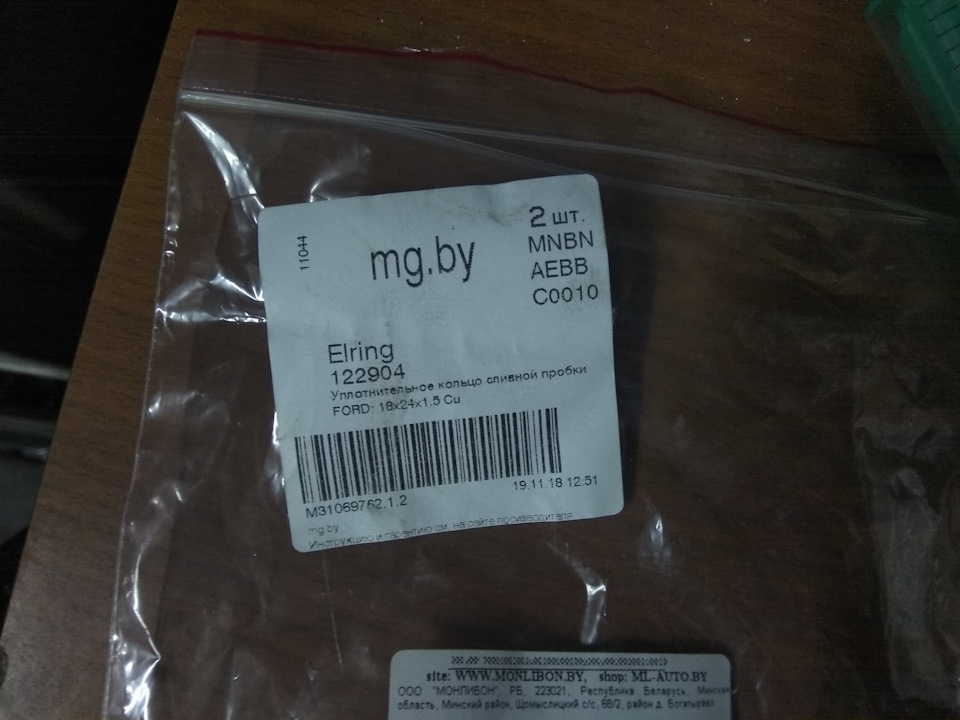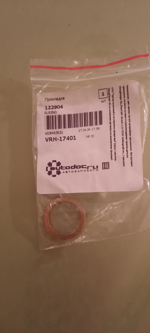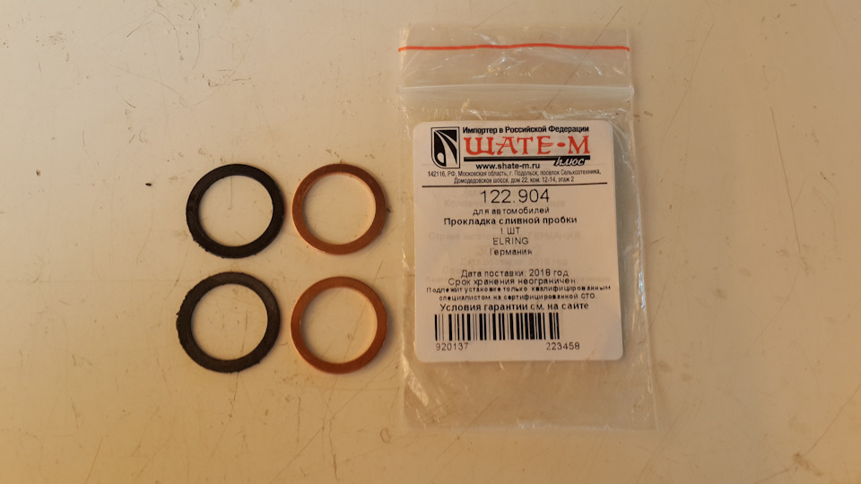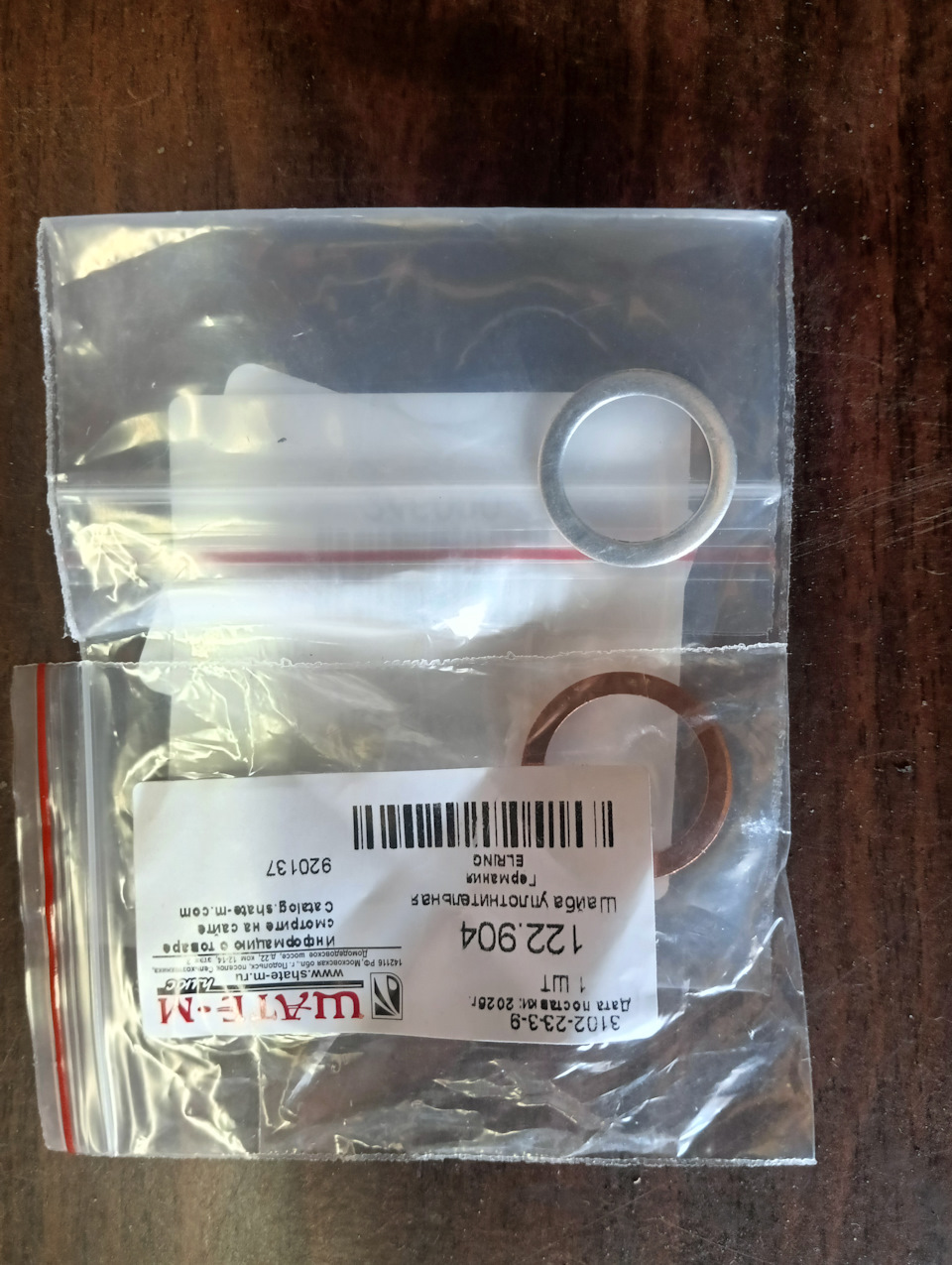 Уплотнительное кольцо, резьбовая пробка маслосливн. отверст.