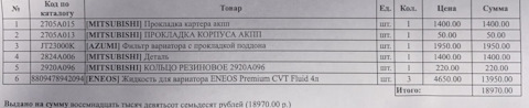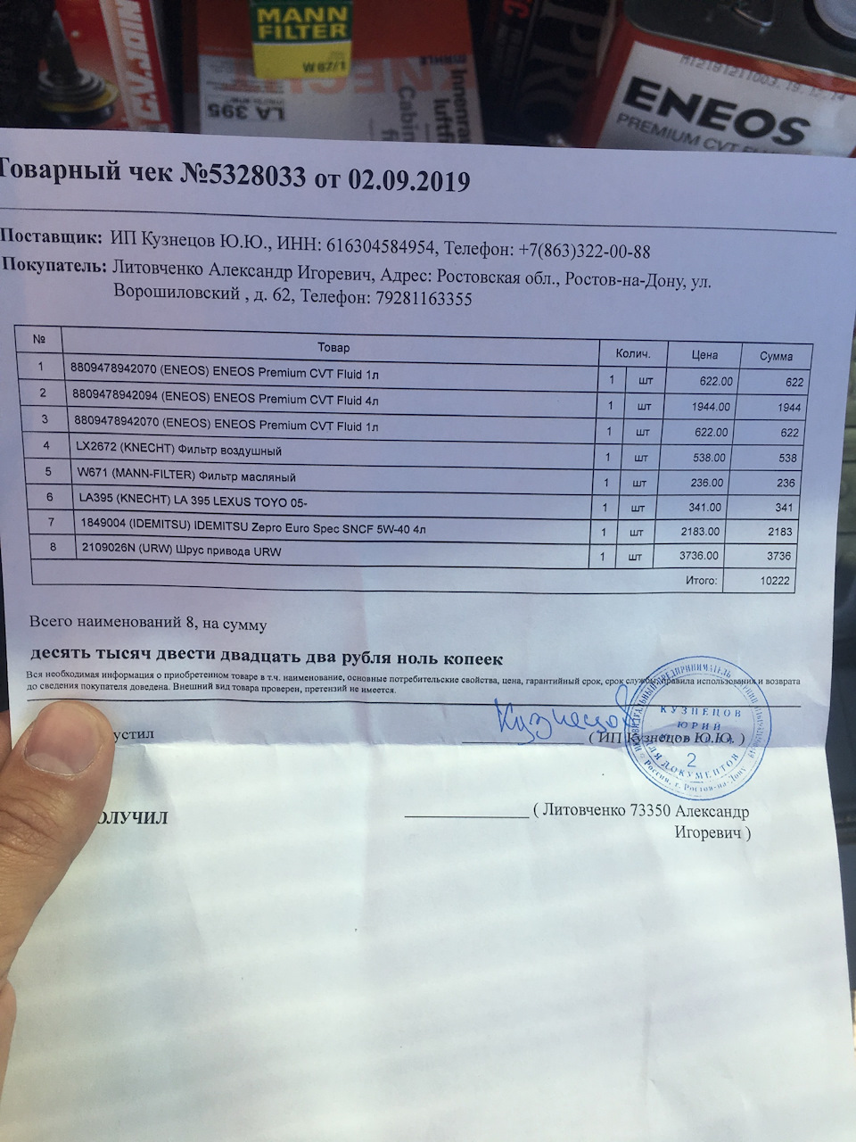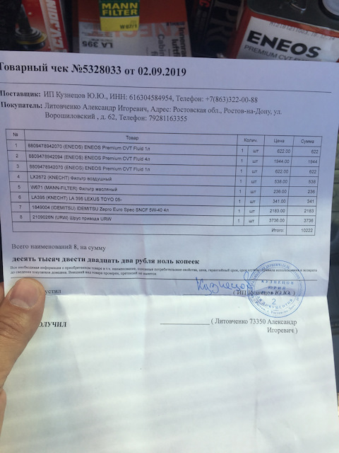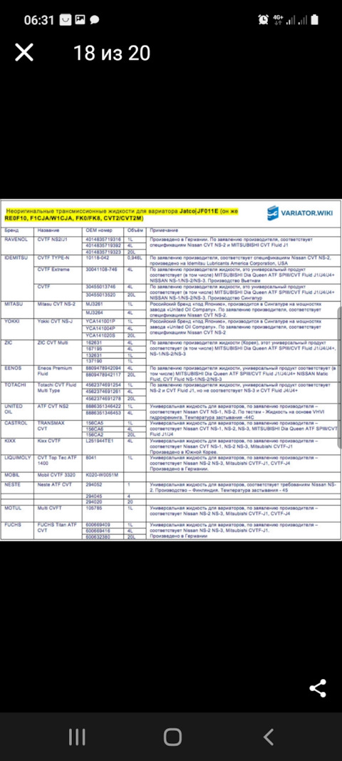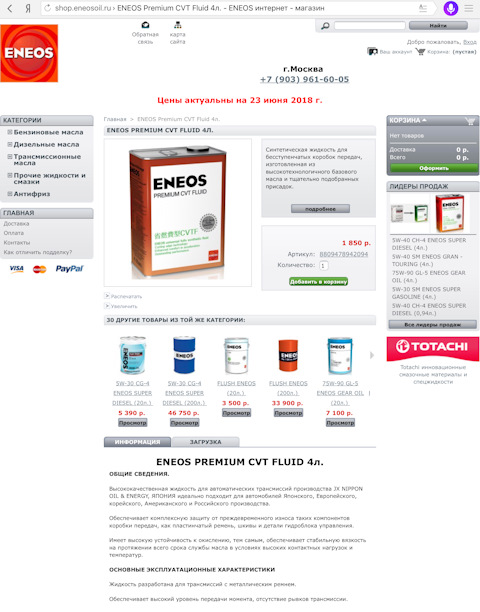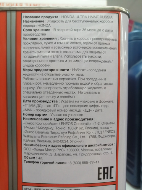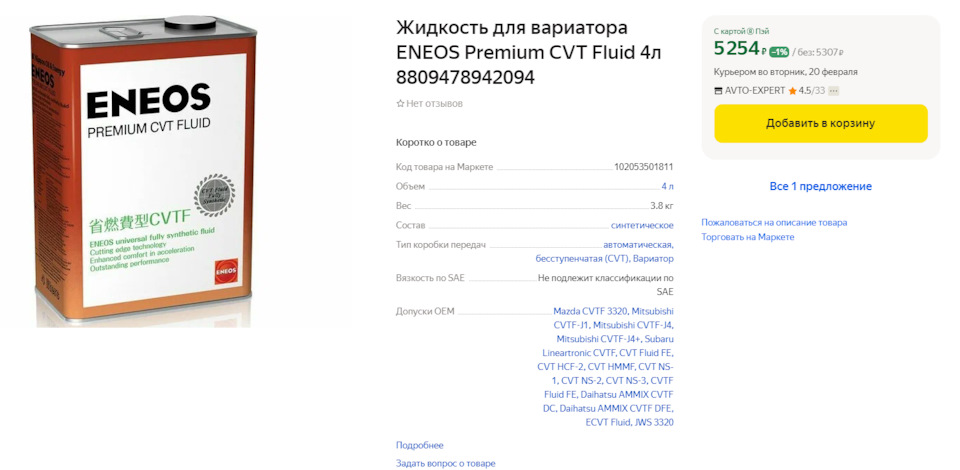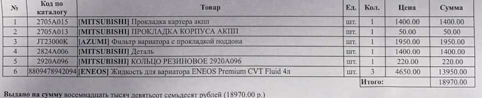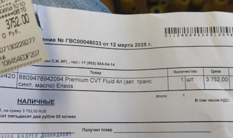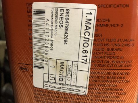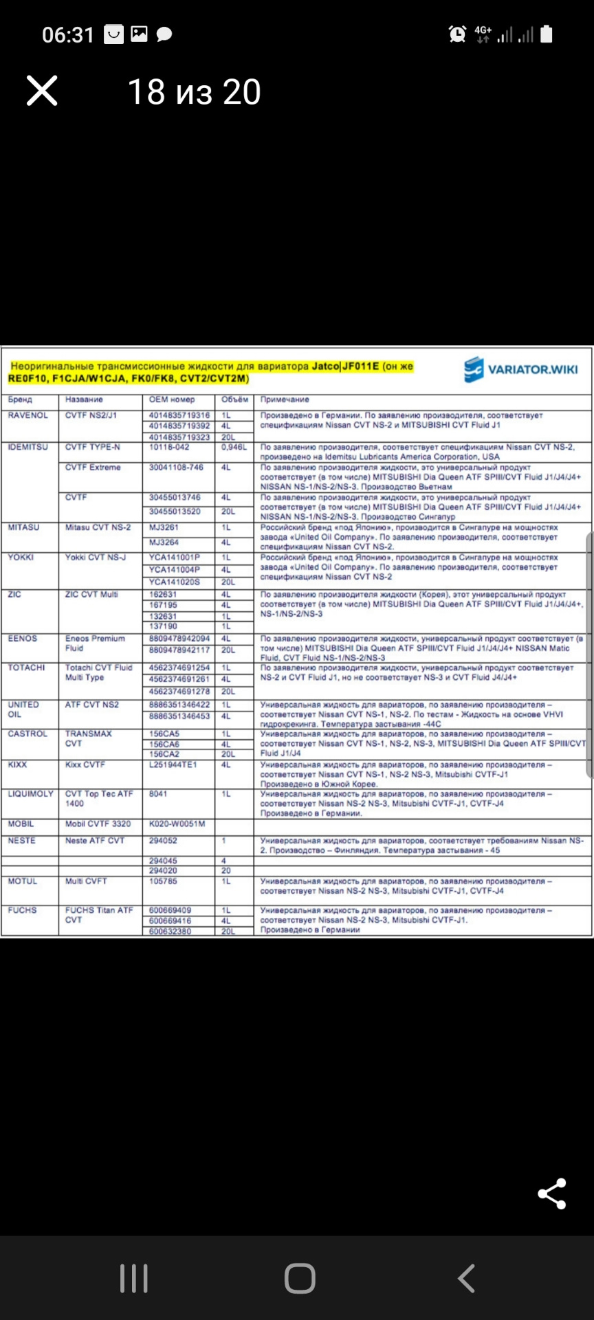 - Трансмиссионное масло (Premium CVT Fluid) 4л