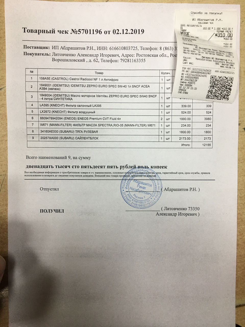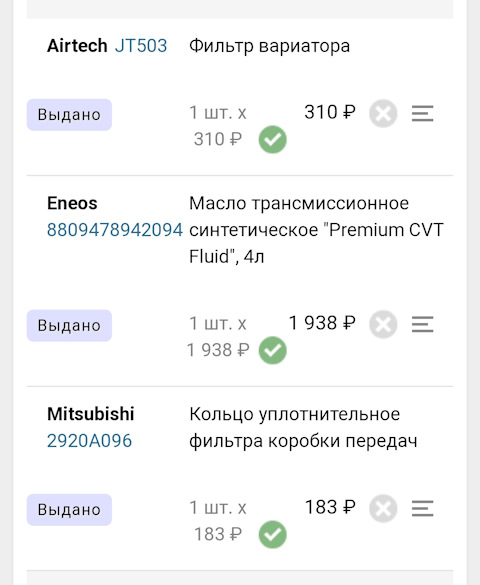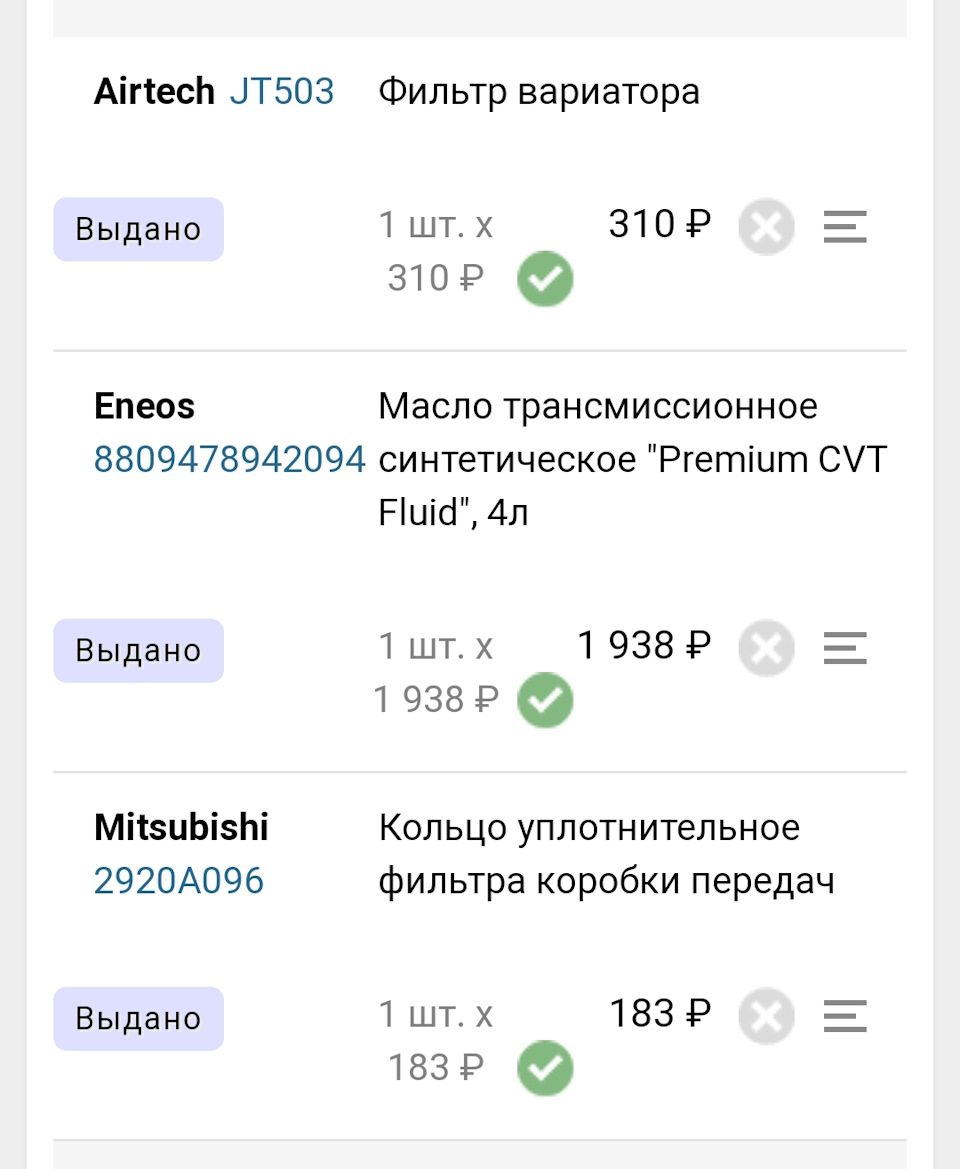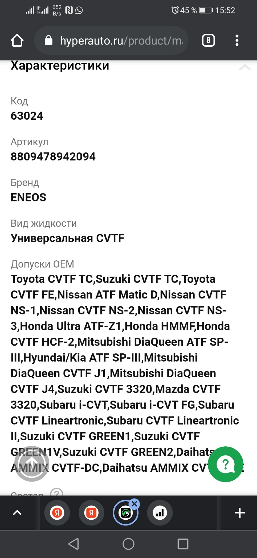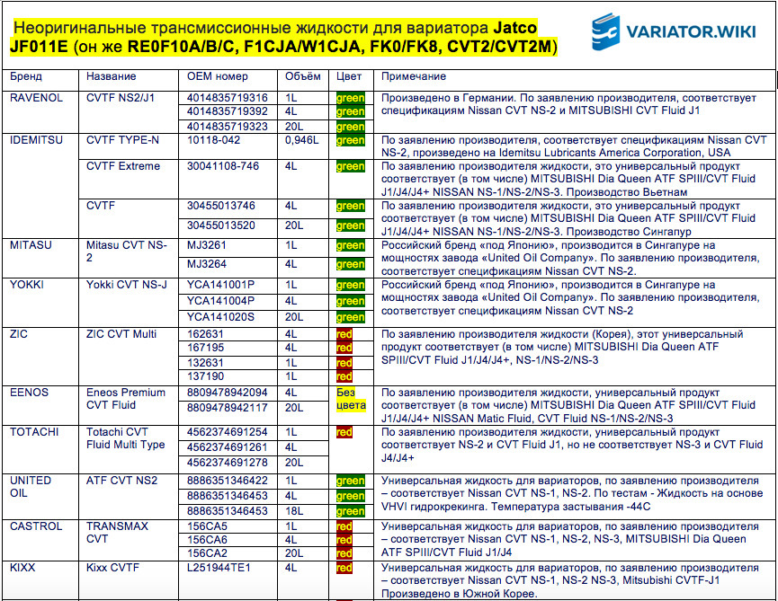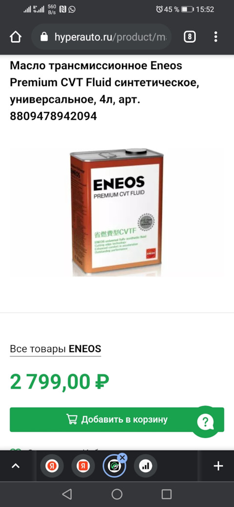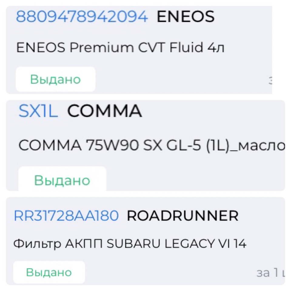 - Трансмиссионное масло (Premium CVT Fluid) 4л