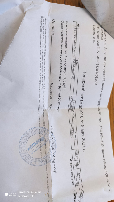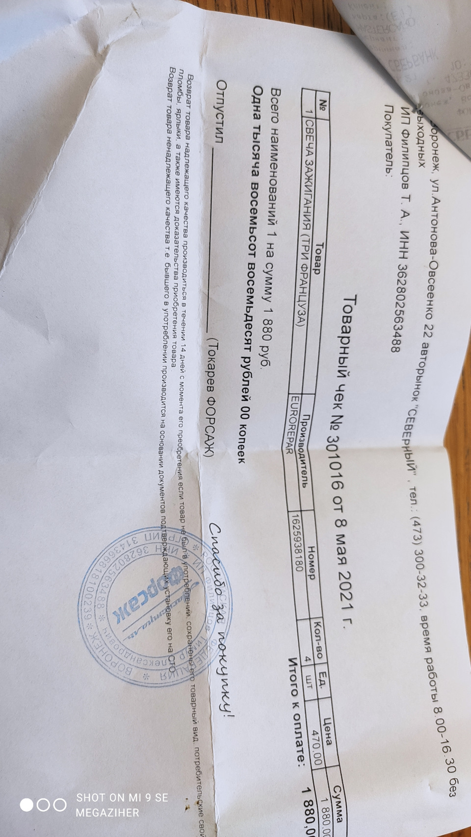 - Свеча зажигания платиновая M14x1,25x19, ключ 16мм, к.ч. HI15
