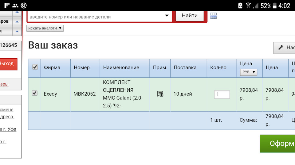 пожалуйста подскажите парт номера сцепление exedy на lancer 9 2L 4g63