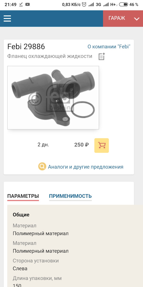 - Фланец системы охлаждения для ГБЦ, с прокладкой