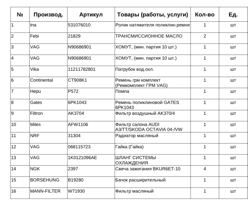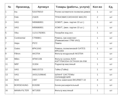 Подходит для Audi A3 II; Seat Altea, Toledo III; Skoda Octavia II; VW Bora II, Caddy III, Golf V, Passat, Touran 1.6I 16V, 2.0FSI