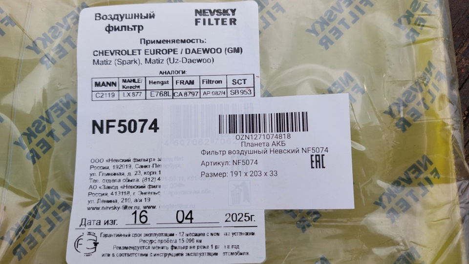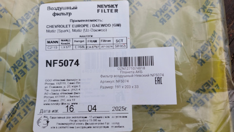 - Фильтр воздушный