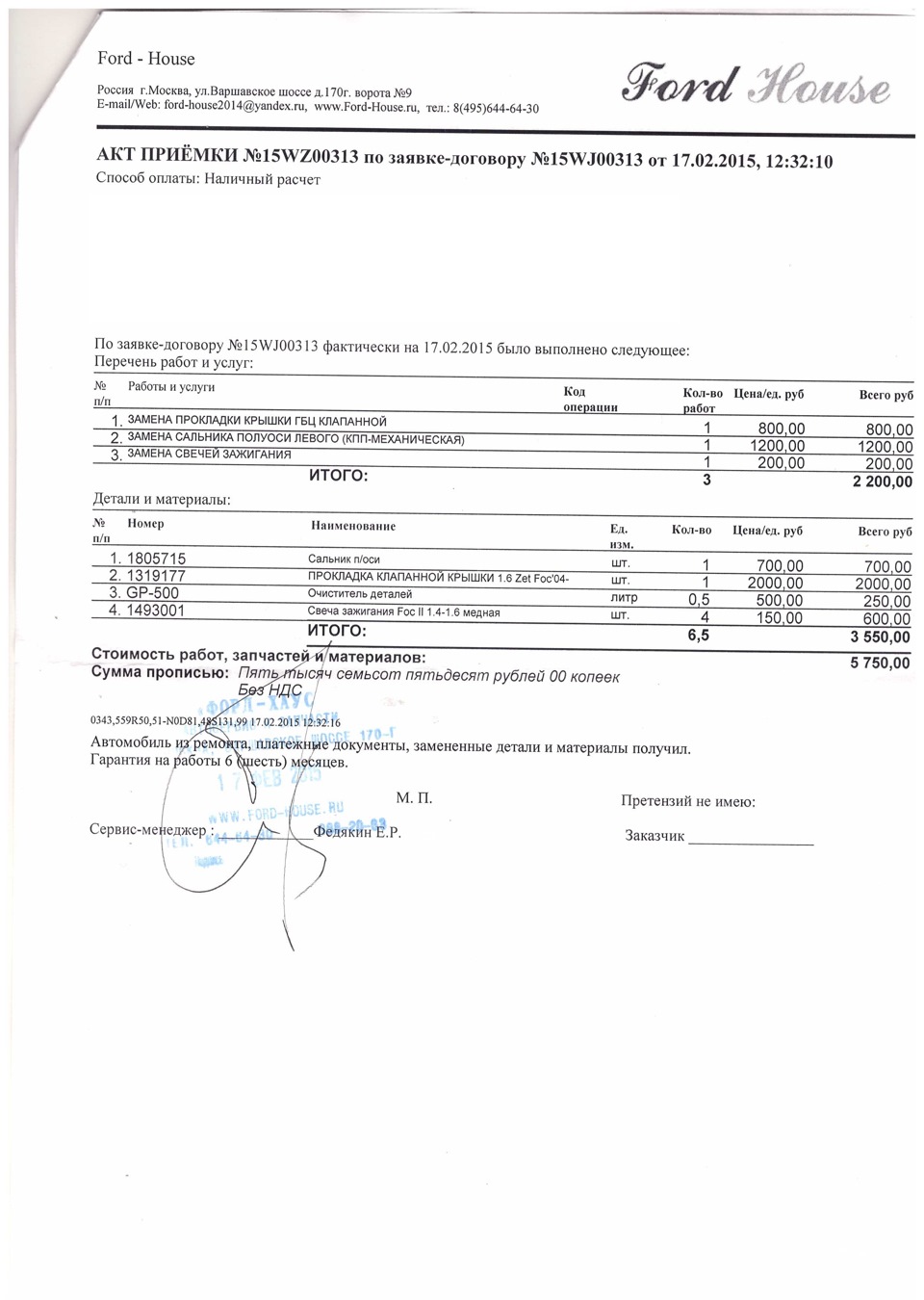 Прокладка клап. крышки <1. 6> Fo04-/CM