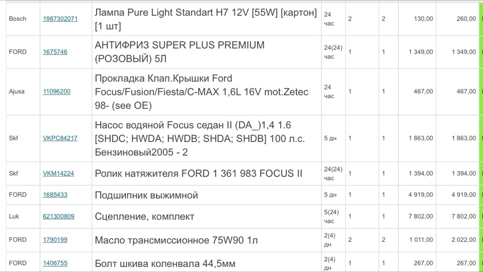 Оригинальные запчасти FORD из Европы под заказ. Часть 22