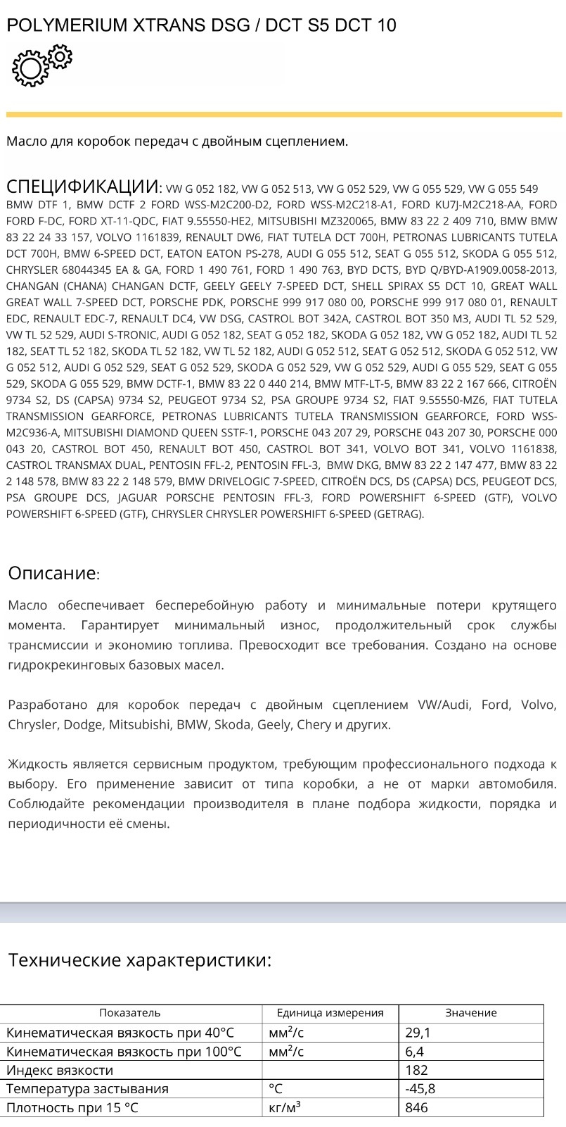 Характеристики детали