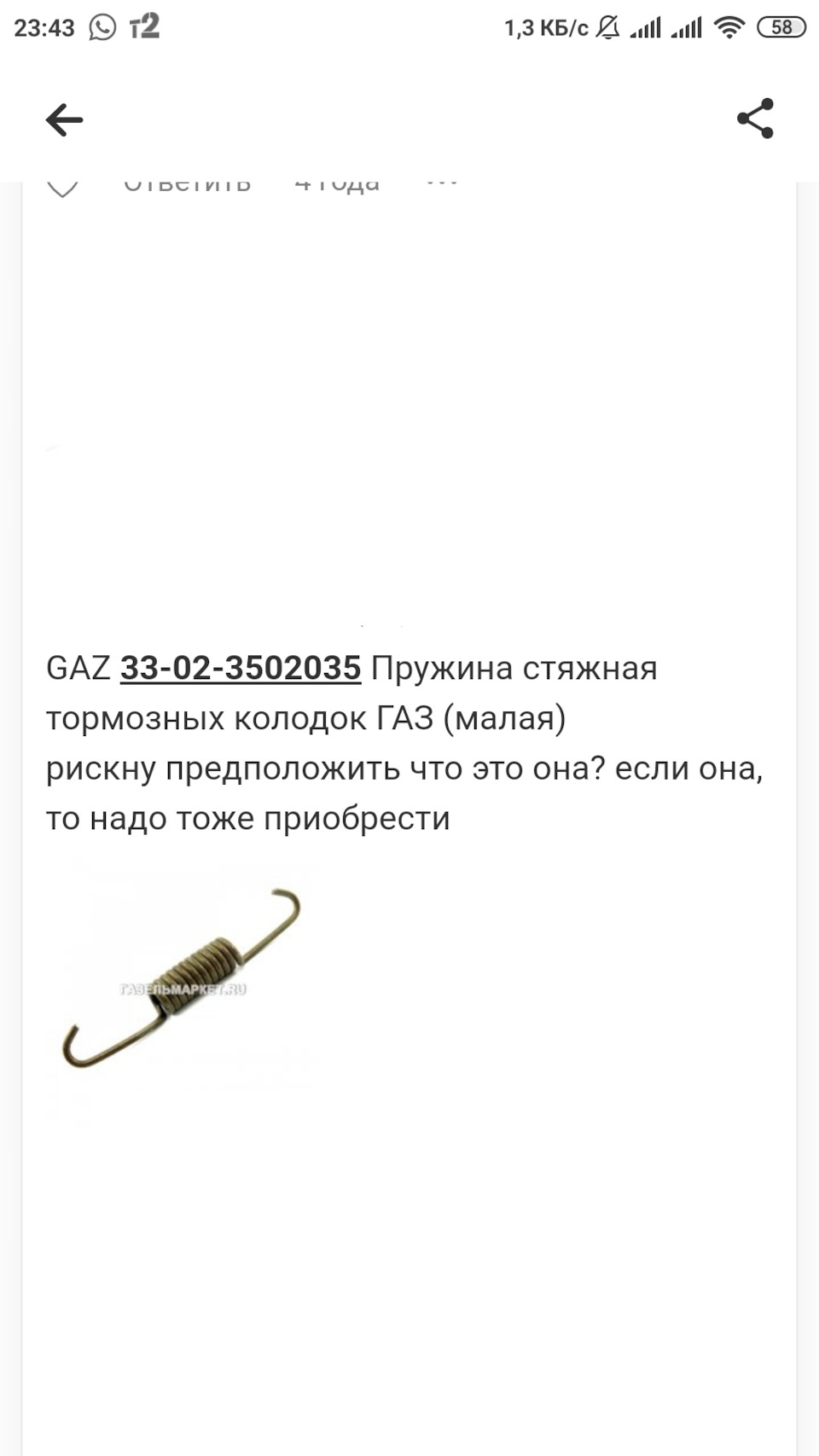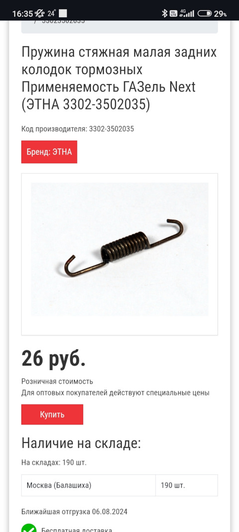 Пружина стяжная колодок тормоза