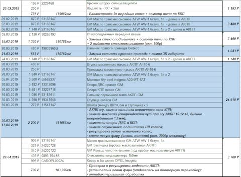 1й год. Стоимость годового содержания Opel Insignia 2.0AT A20NFT 10.2018-10.2019 — 295т.р.