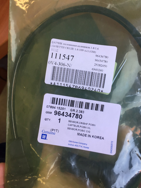 - Датчик положения коленвала / Chevrolet Aveo, Lacetti, Rezzo 1.4/1.6/1.8 03~