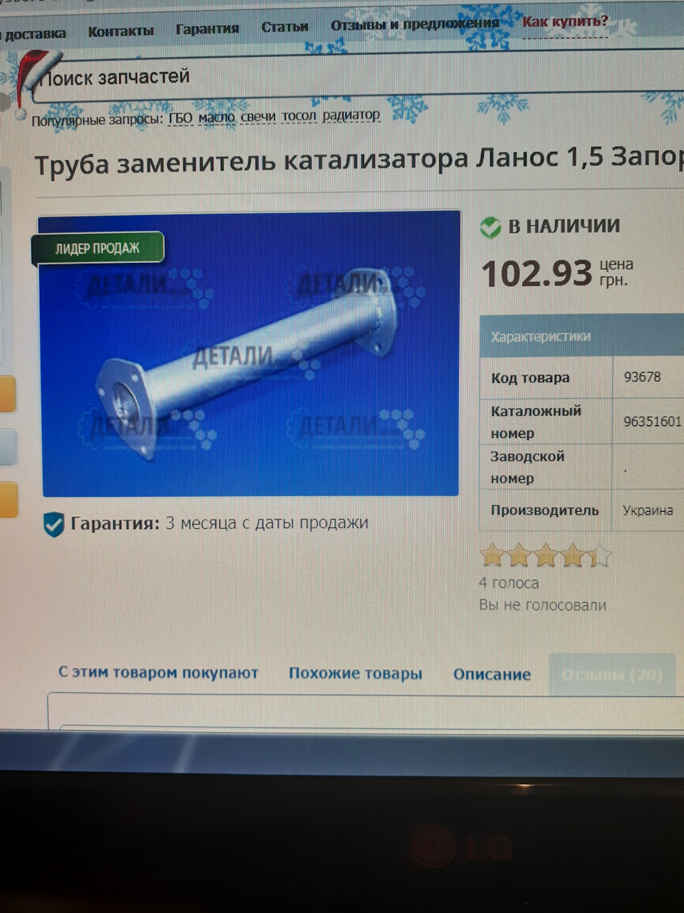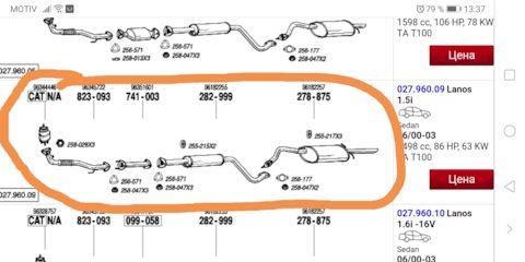 - Глушителя вставка Chevrolet Lanos/Rezzo