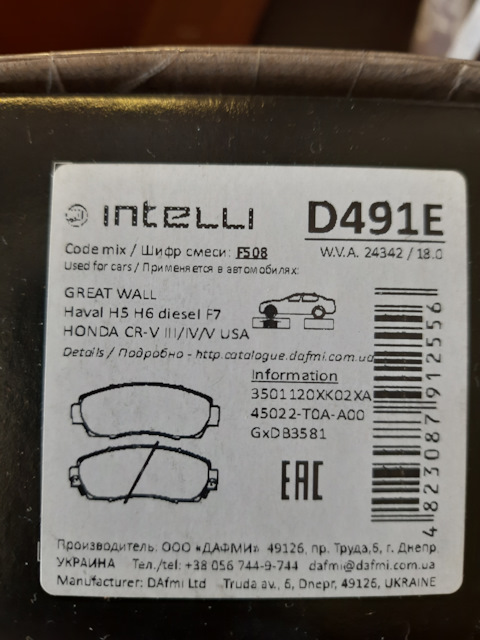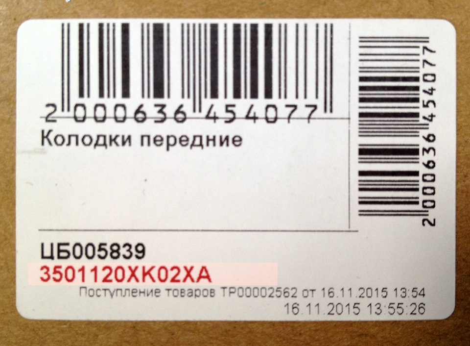 - Колодки тормозные передние
