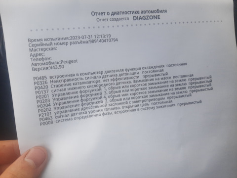 Коды ошибок пежо