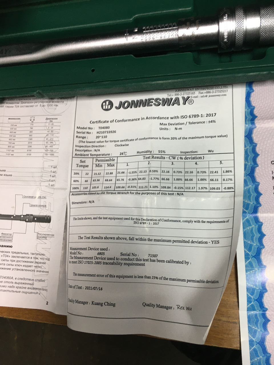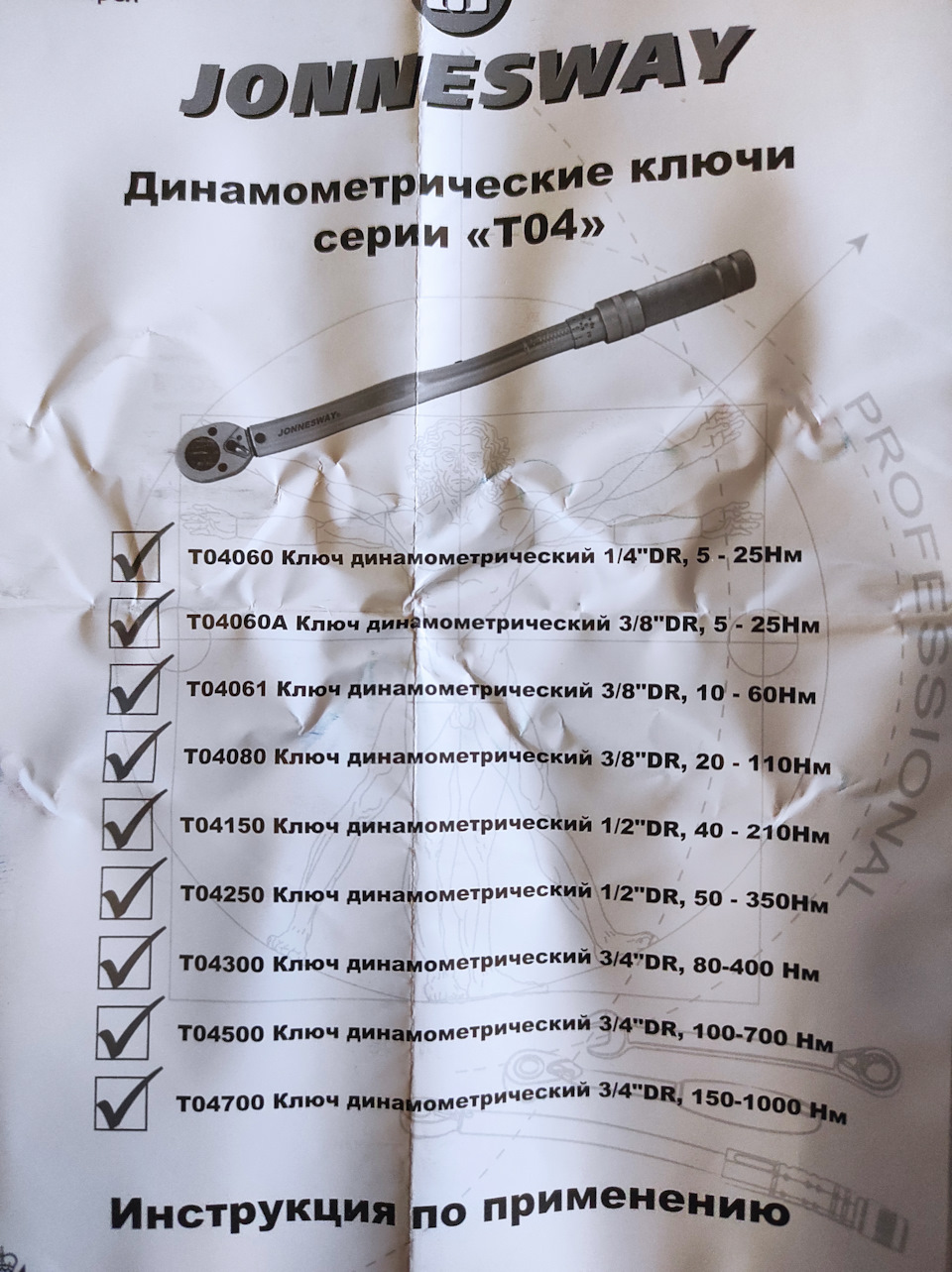 - JONNESWAY T04M080 Ключ динамометрический 3/8DR 19-110Нм