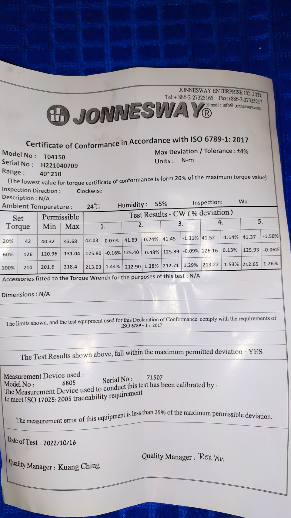 - JONNESWAY Ключ динамометрический 1/2DR 42-210Нм