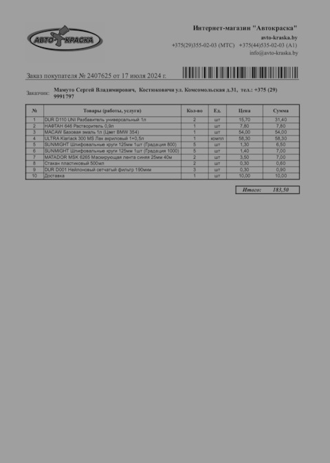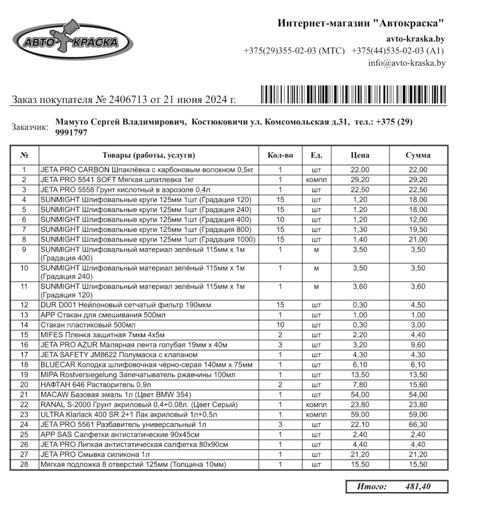 - Артикул