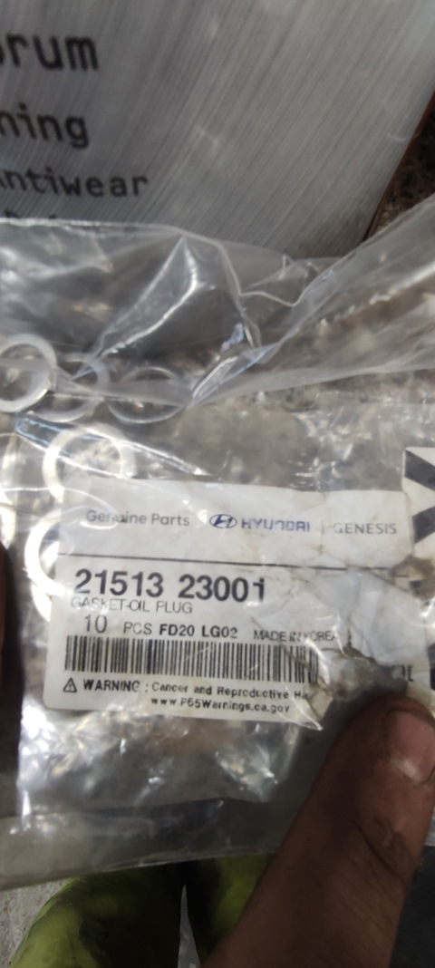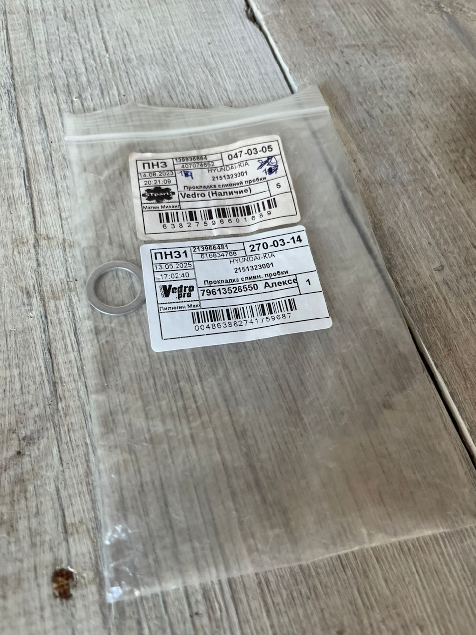 - Упорное кольцо сливной пробки масляного поддона двигателя