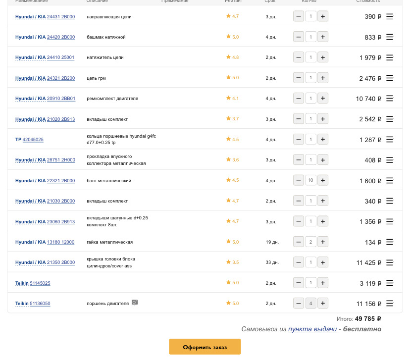 - 1,5 млн. наименований запчастей в ассортименте