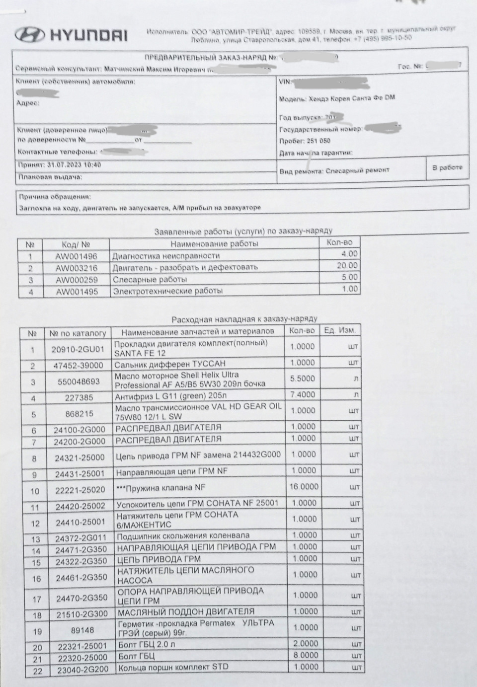 Ремонт двигателя G4KE Hyundai Santa Fe 3