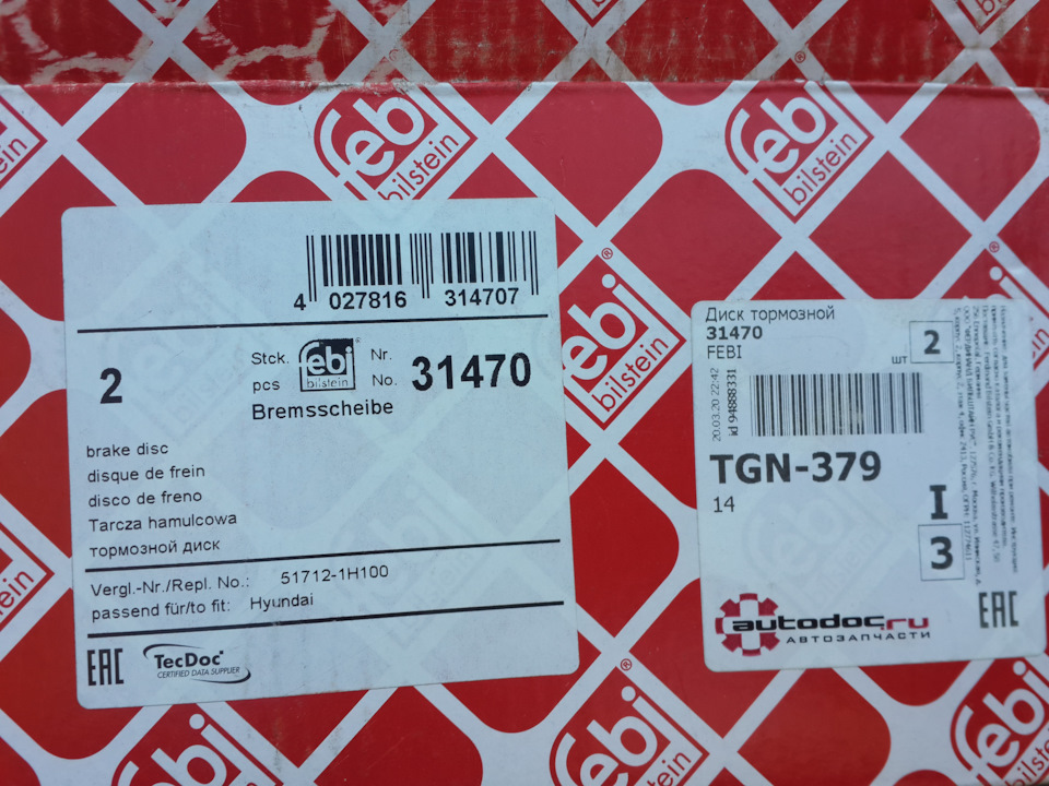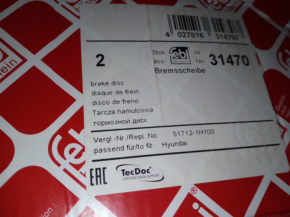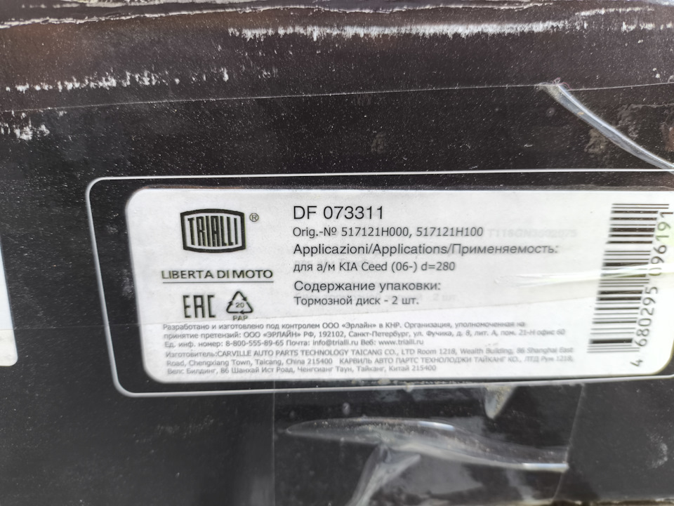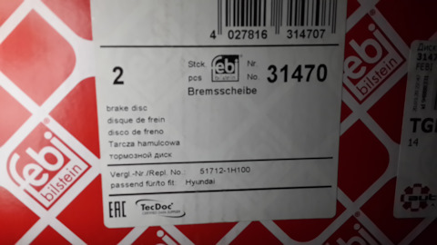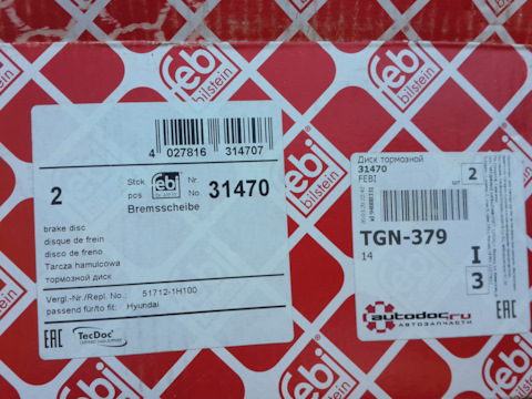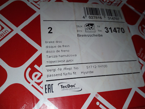 - Тормозной передний диск