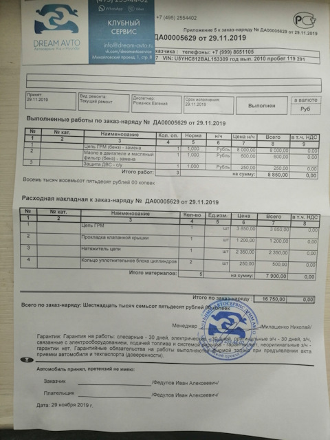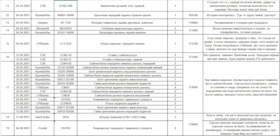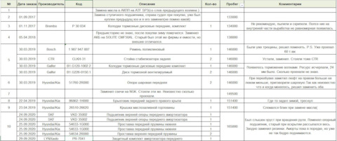 Список работ за время владения авто.