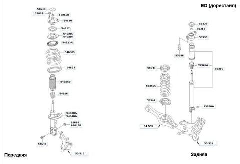 Замена передних и задних стоек в сборе, а также пружин