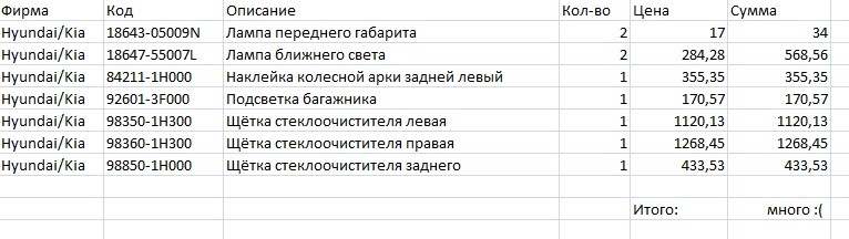 № 5 Может кому понадобится. Артикулы запчастей для киа Церато и наименование ламп