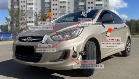 Лампы освещения Hyundai Solaris 1 RB (2011—2014) СЕДАН