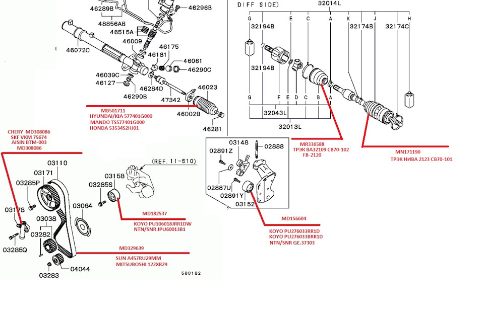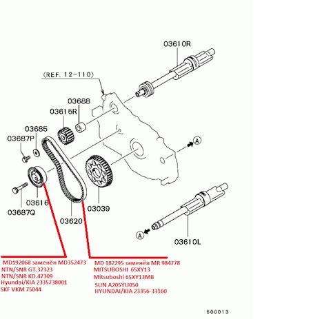 - Обводной ролик ремня ГРМ MMC 4G63, 4G15