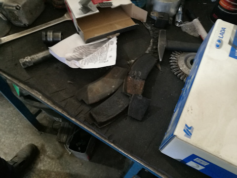 - Комплект фрикционных накладок с основанием в сборе заднего тормоза