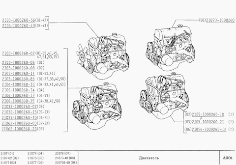Каталог запчастей ВАЗ 2107 в редакции 2002 г. Двигатель. Часть I.