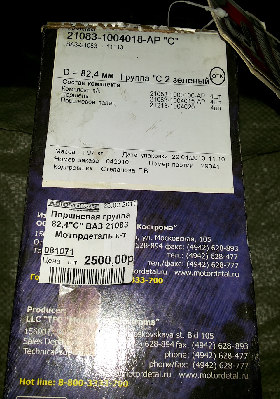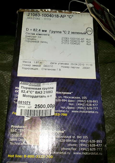 Купил поршневую "Мотордеталь".