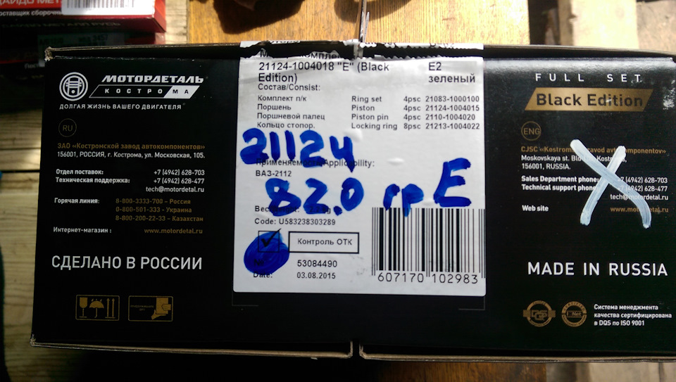 Купил поршни Ваз 21124 для установки в блок 21213.