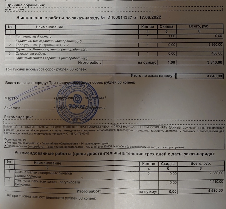 Течь масла. Премиум Болт за 1к. Замена тросов ручника