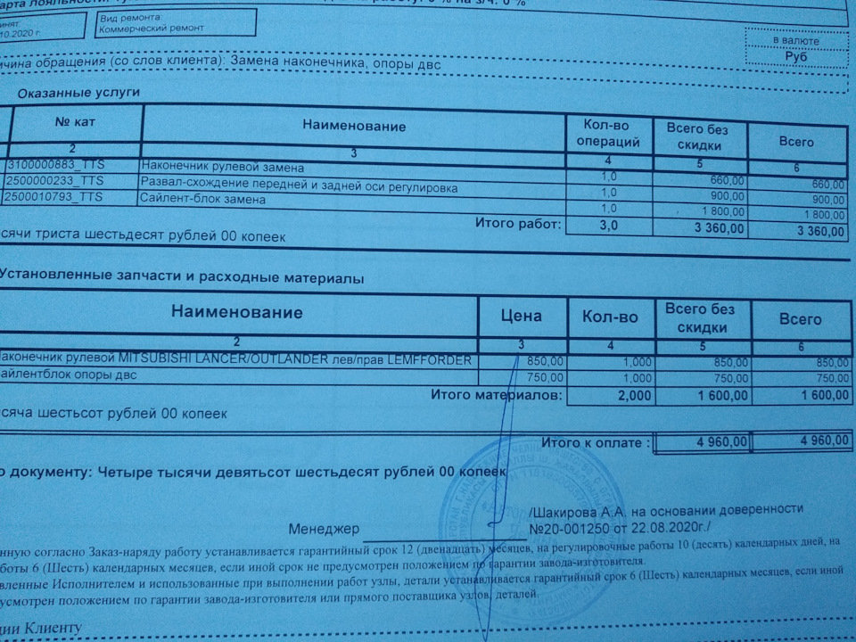 Рулевой наконечник, задняя опора ДВС и развал/схождение