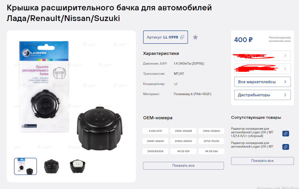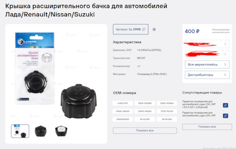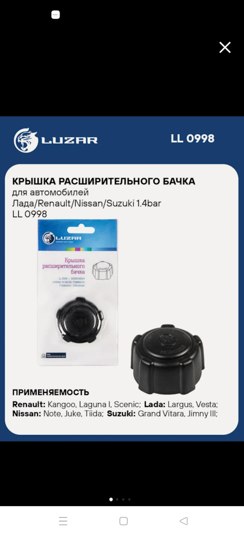 - Крышка расширительного бачка для автомобилей Лада/Renault/Nissan/Suzuki