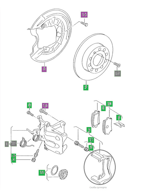 - Подходит для Комплект направляющих тормозного суппорта заднего (направляющая Ø 8mm, суппорт TRW/Lucas)