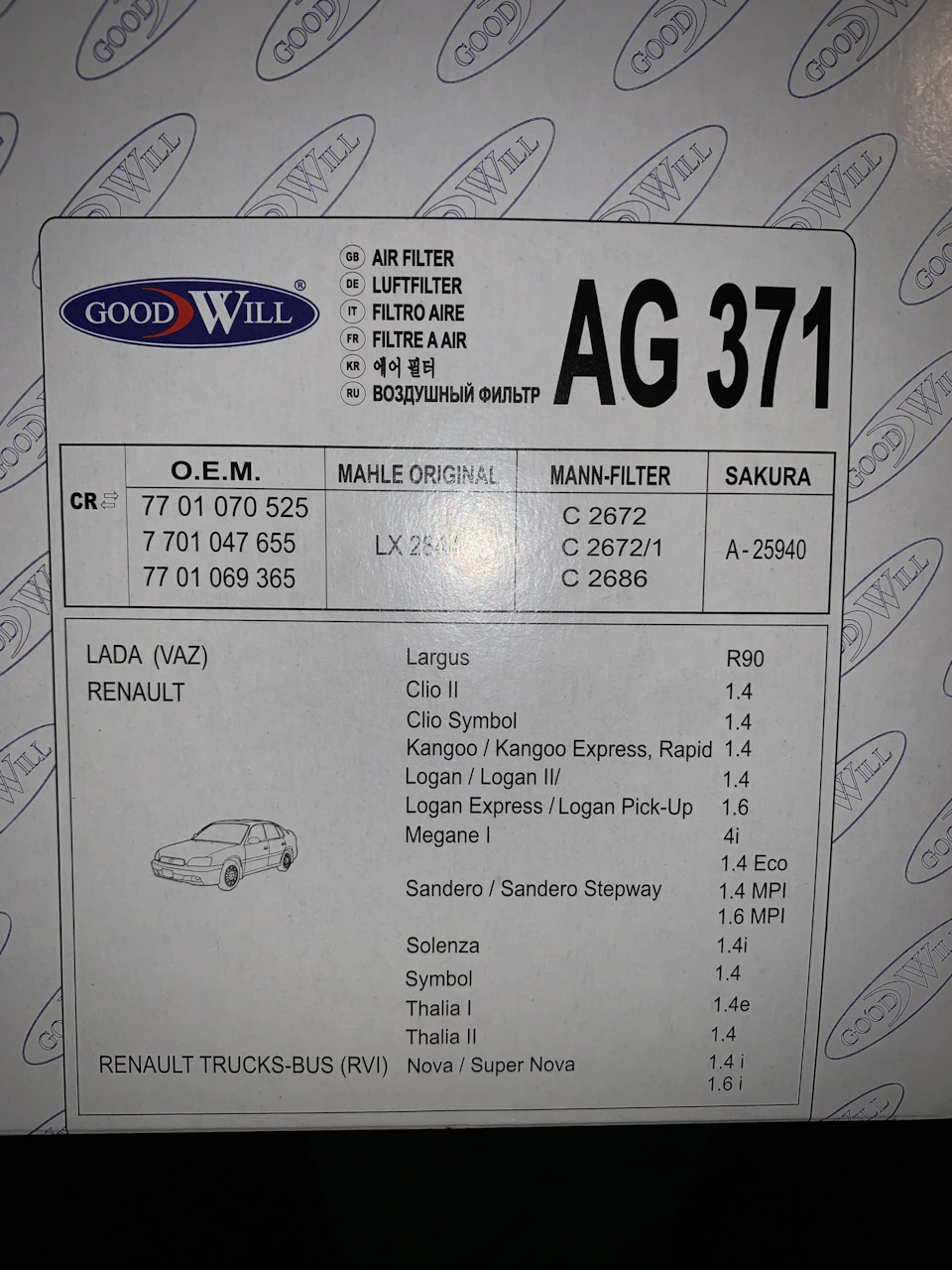 Подходит для RENAULT Clio II, Clio Symbol, Kangoo / Kangoo Express, Rapid, Logan / Logan Express / Logan Pick-Up, Mégane I, Sandero