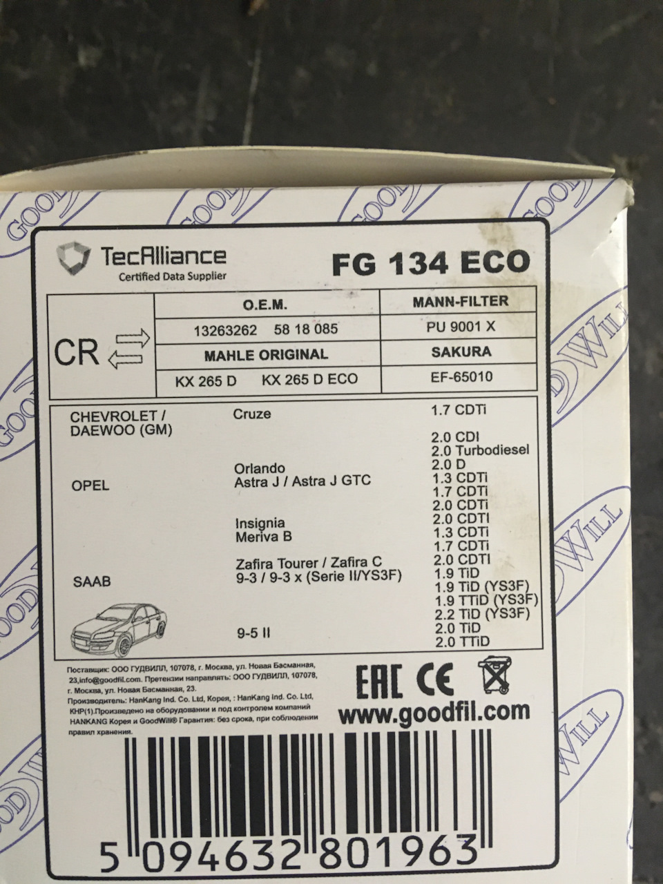 Подходит для CHEVROLET Cruze, Orlando, Malibu, OPEL Astra J, Insignia — all 1,7-2,0 TD