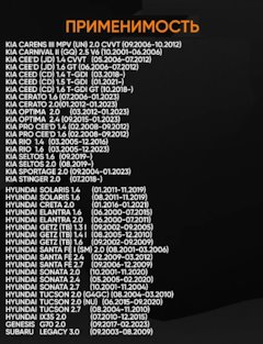 Подходит для Hyundai Accent I, II, III >94, Elantra 00-06, Getz >02, H1 97-08, i20 >09, i30 >09, Matrix >01, Santa Fe I, II >00, Sonata I-V 88-10, Tuscon >04, Terracan >01
