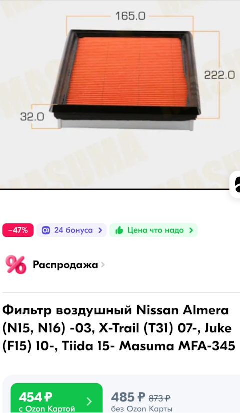 - Фильтр воздушный