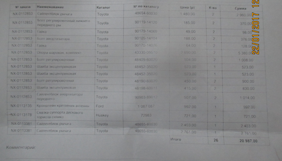 - Комплект аксессуаров дискового тормоза. Передняя ось